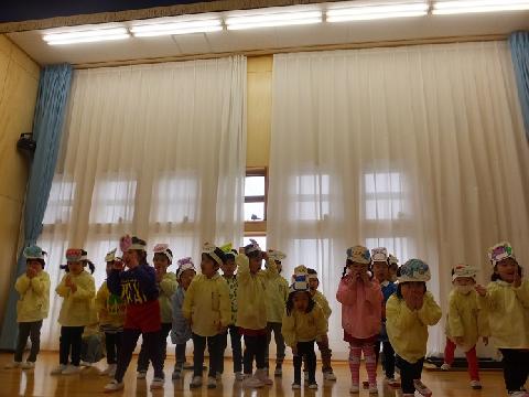 みんなで発表を見せ合ったり、ホールで大きな輪を作りフルーツバスケットゲーム